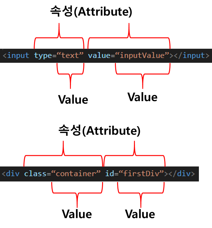 - tag에는 속성(Attributes)와 Value를 가지고 있다
